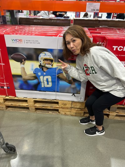 after that my mom and i went to costco and whole foods because i was desperately craving cold brew and chocolate fair life and we somehow managed to buy way too much shit (including but not limited to: a three pack of stainless steel strainers, shrimp cocktail, three flavors of olipop, and a picture of my mom with justin herbert’s face on a tv box) but yet neither of the items i actually went there for.